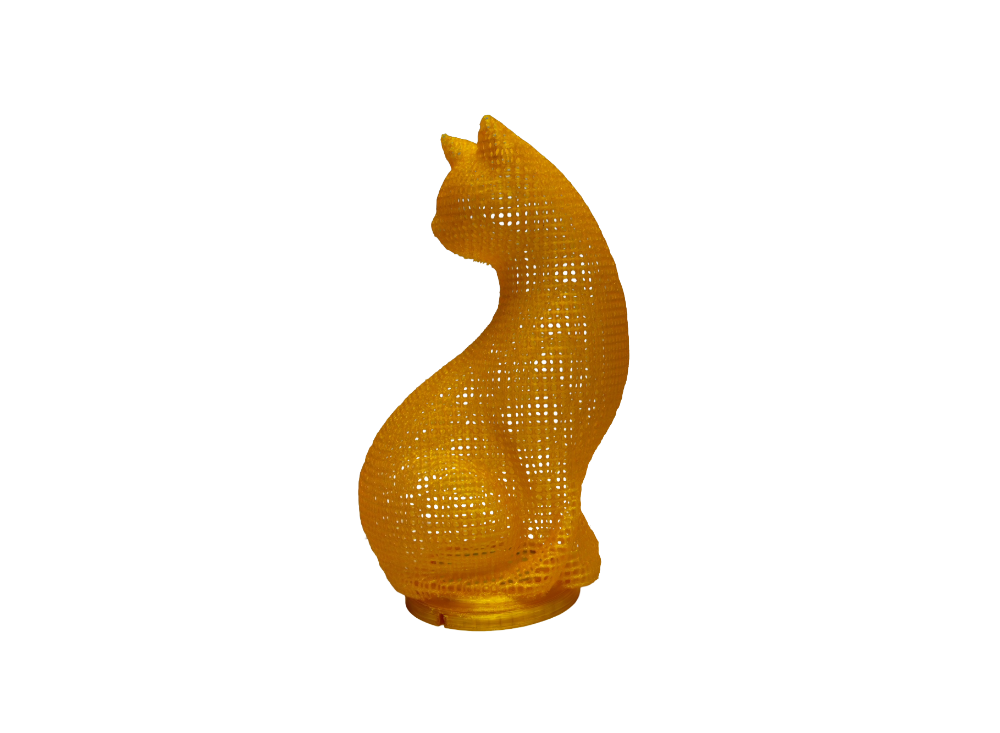 Luminária decorativa com design de gato, impressa em PETG translúcido com iluminação LED. Leve, moderna e perfeita para criar um ambiente acolhedor.